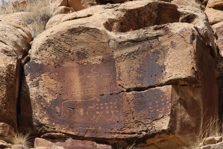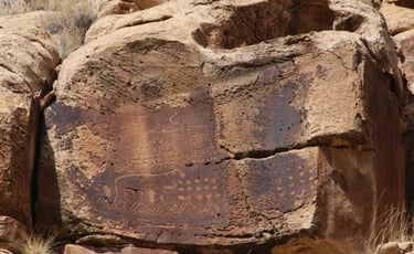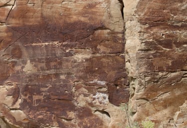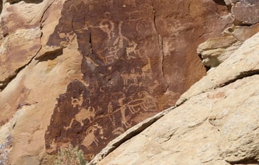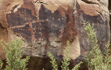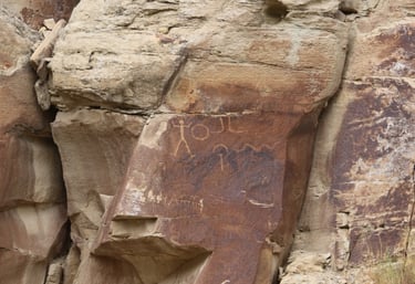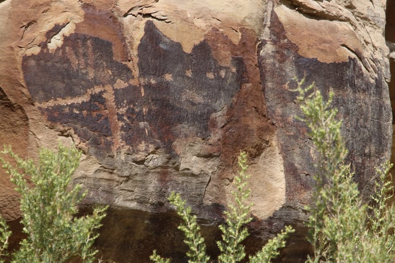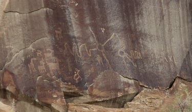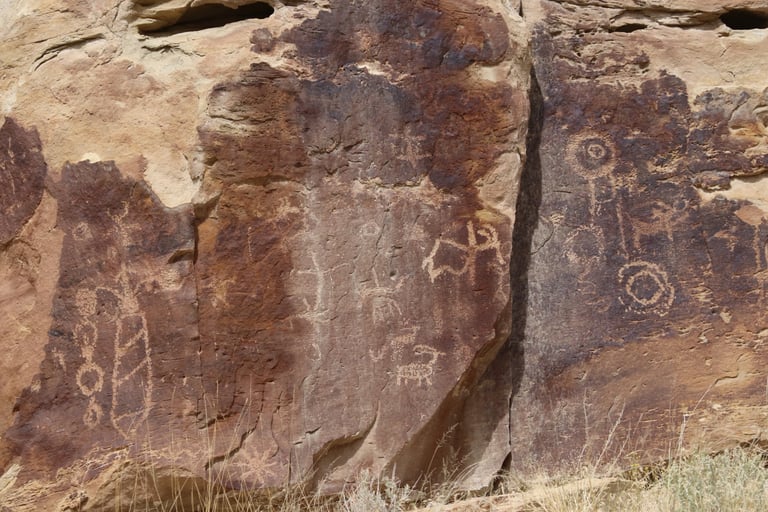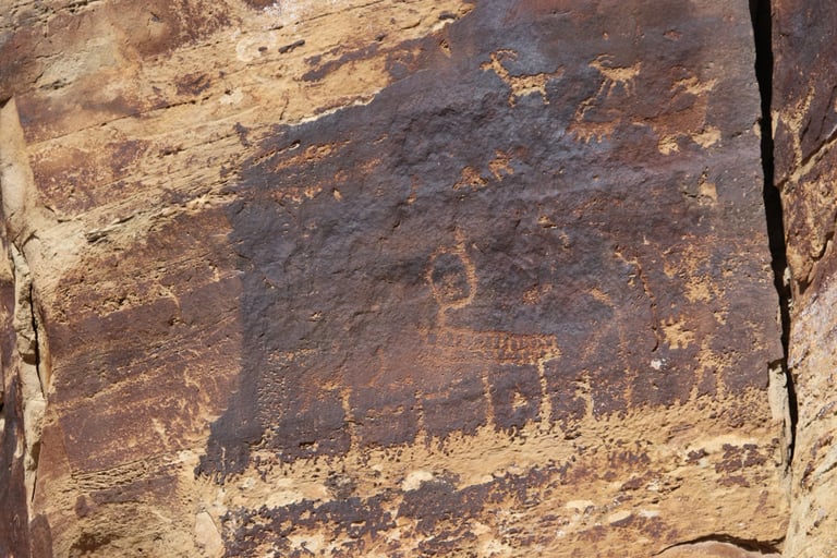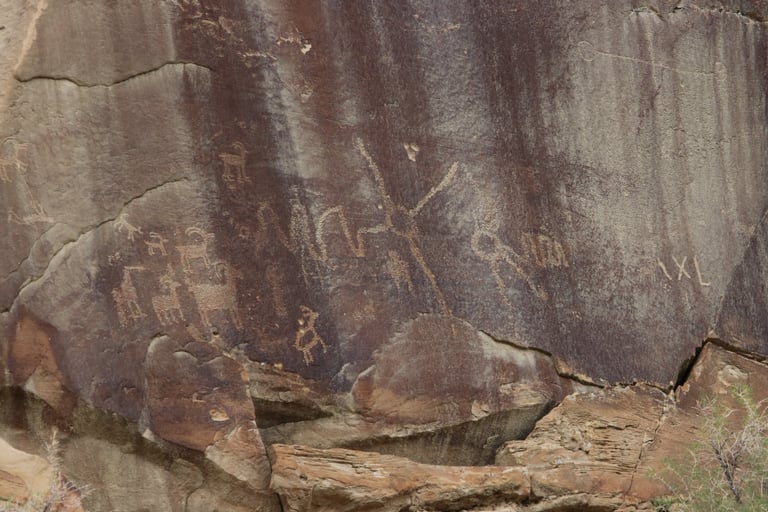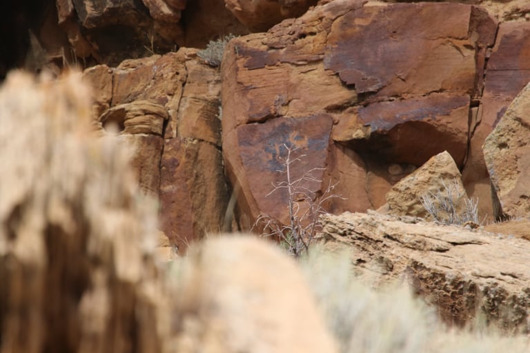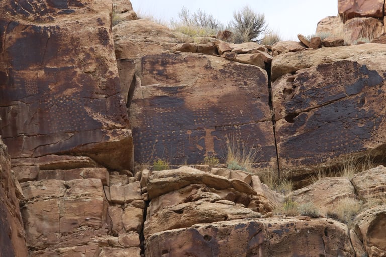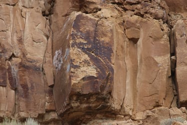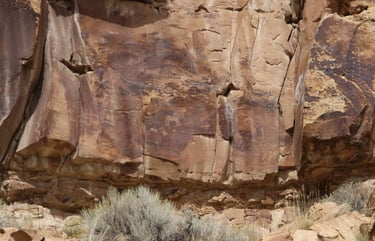 Coyote placing the stars is one of the most spectacular petroglyph panels in Nine Mile Canyon and one of the easiest to find. However, you will need binoculars, a spotting scope, or a telephoto lens to see most panels. The following photos were taken using zoom lenses with a focal length of 180mm to 560mm.