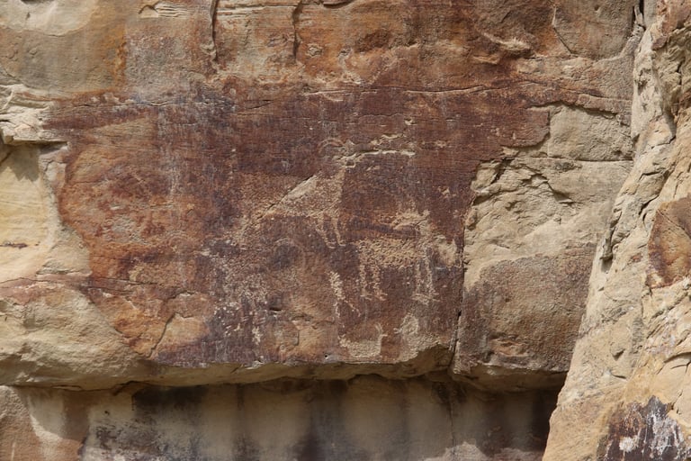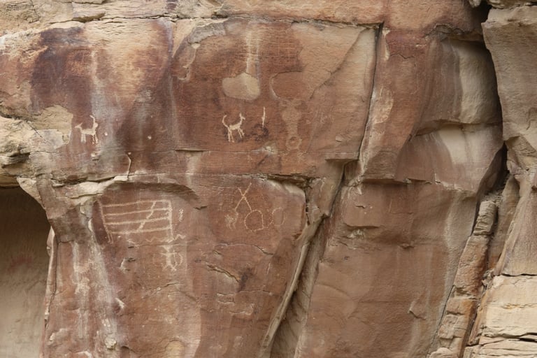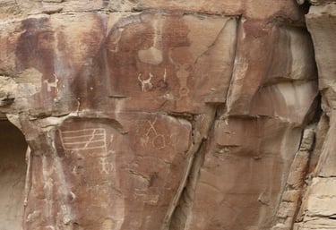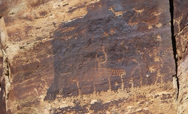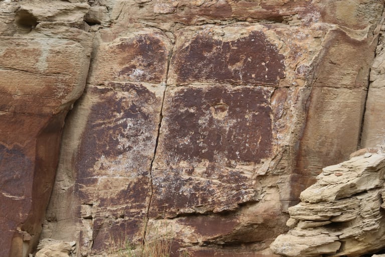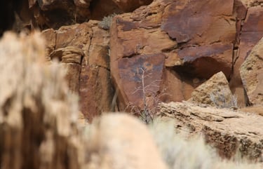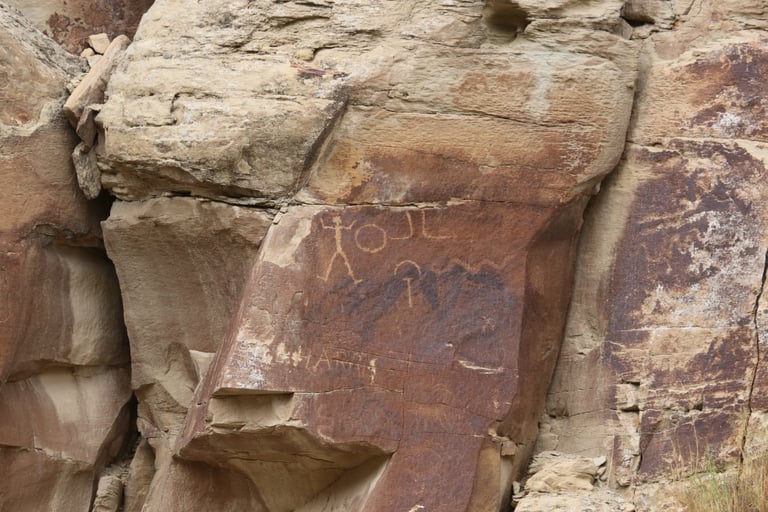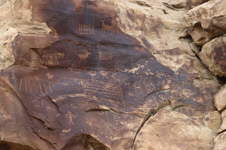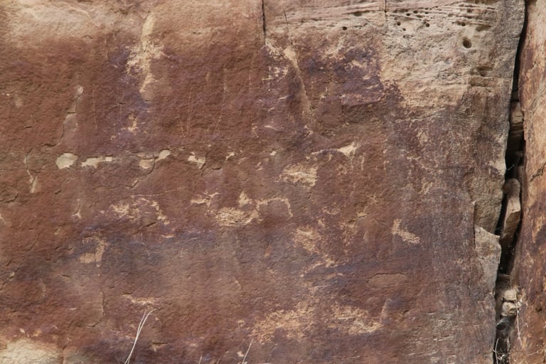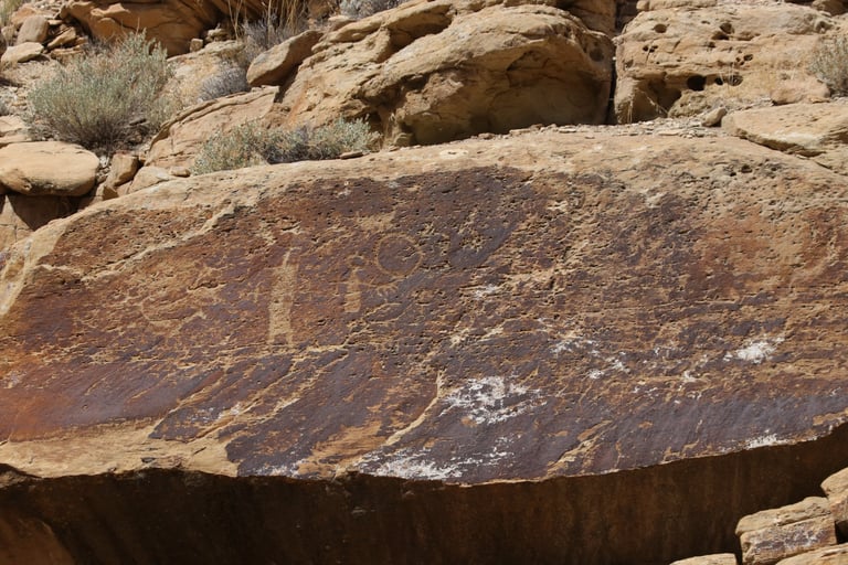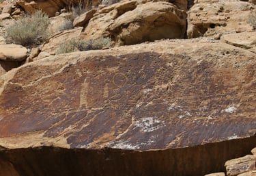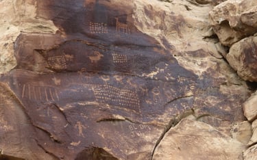 Coyote placing the stars is one of the most spectacular petroglyph panels in Nine Mile Canyon and one of the easiest to find. However, you will need binoculars, a spotting scope, or a telephoto lens to see most panels. The following photos were taken using zoom lenses with a focal length of 180mm to 560mm.