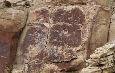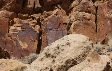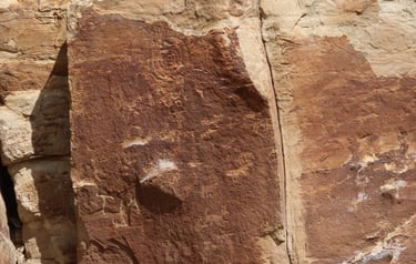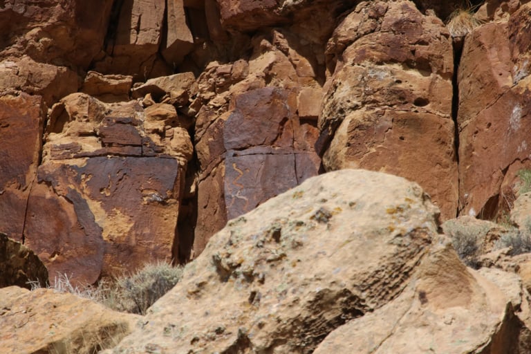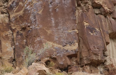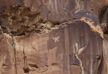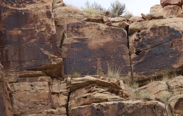 However, don’t limit yourself to just the main attraction. The following photos were taken from about 200 feet west of the sighting device to about 200 feet east. The panels are found at nearly every elevation from the road. Some are very busy, while others have only a few petroglyphs.