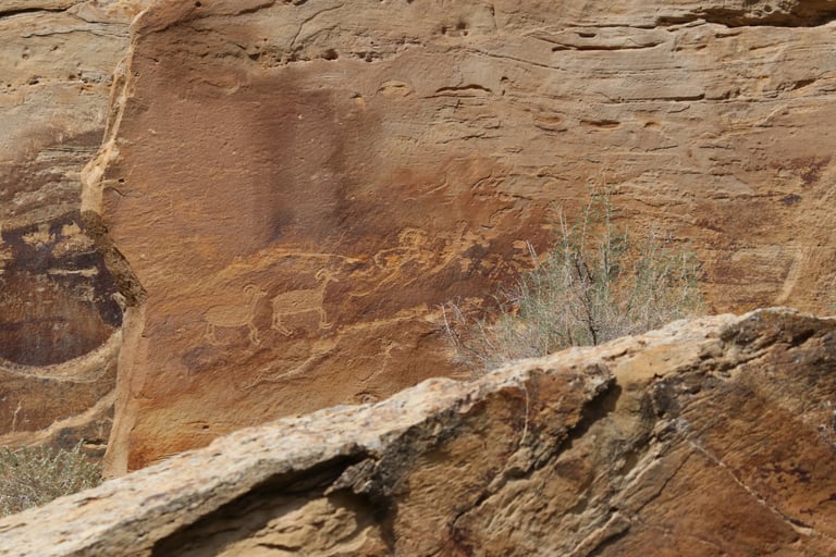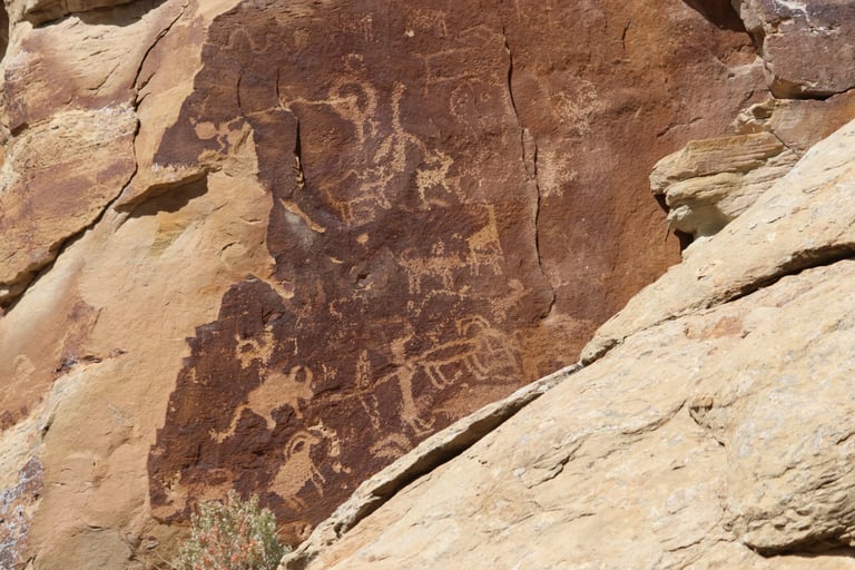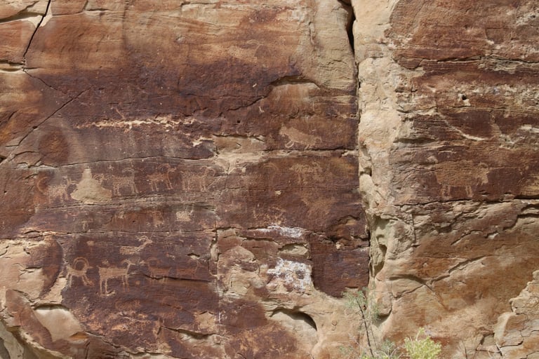 Coming from Wellington, the panels are marked by a sign about 400 feet past the junction of Nine Mile Canyon and Harmon Canyon Roads. There is a fair amount of parking on the south side of the road, but it can fill up quickly if you’re visiting on a particularly busy day. There is a sighting device by the sign to show you the general area of the main panel. Just look through the tube.